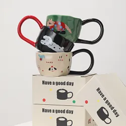 Big Ear Mug Ceramic Mug High Value Cute Big Handle Creative Cartoon Pattern Coffee Mug