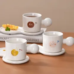 Meatball cup and saucer creative color ceramic cup and saucer set simple coffee cup