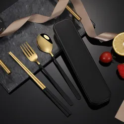 Набор столовых приборов из нержавеющей стали, черный, золотистый, 3 штуки