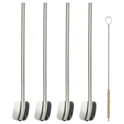 [IKEA] 5-pc drink strw/spoon set w clng br, stainless steel