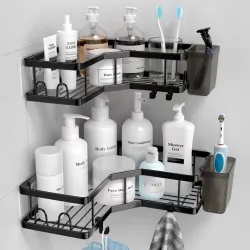 Железный угловой стеллаж для хранения туалетных принадлежностей без перфорации, стеллаж для хранения мыла, треугольный стеллаж, набор из 2 частей